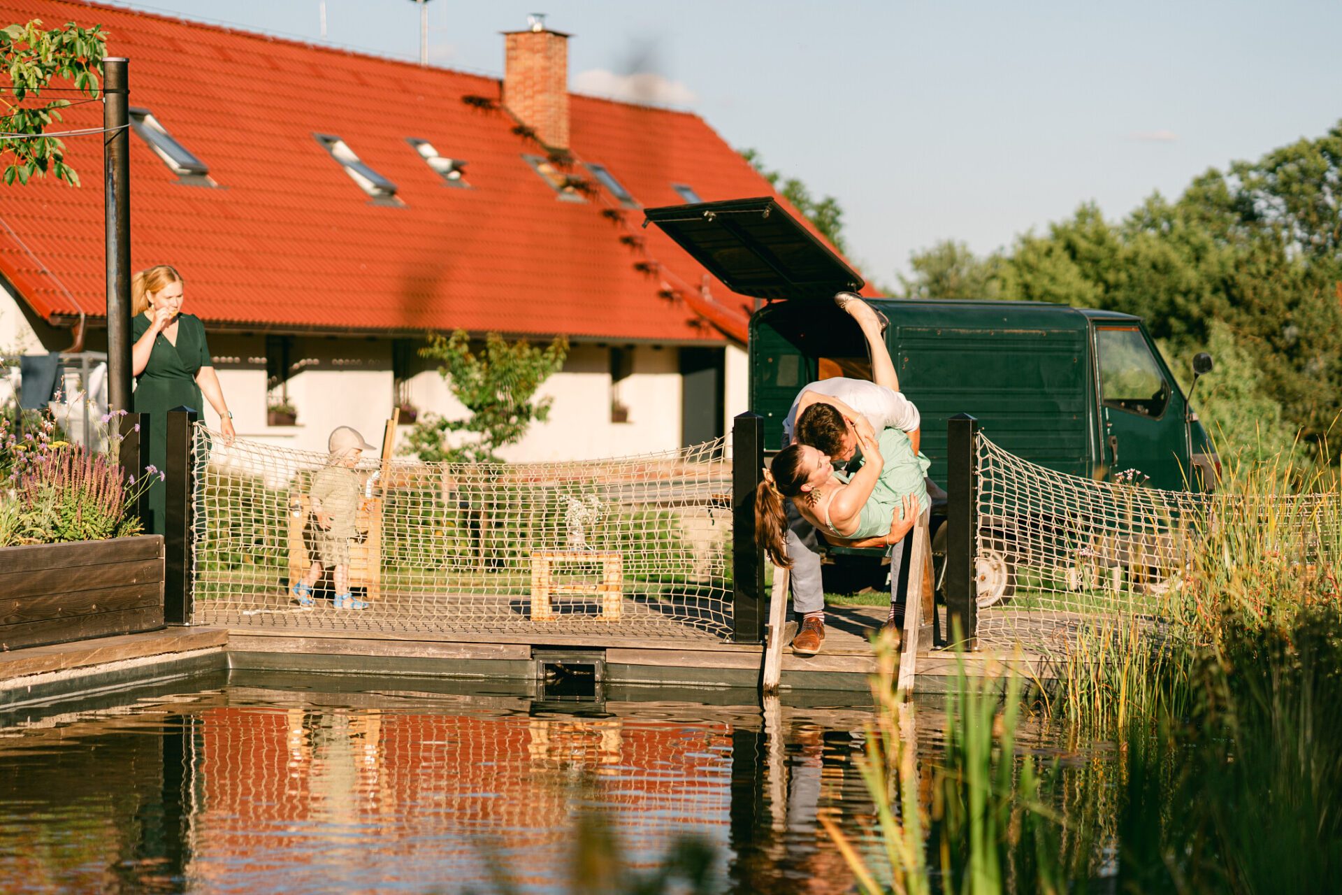 Slavností den je vhodné zahájit svým oblíbeným rituálem. Pokud preferujete čaj nebo kávu, doporučujeme je vychutnat u smaragdového jezírka, které je součástí prostorné venkovní terasy. Po hlavní hostině, kterou lze naplánovat až pro 100 osob, se můžete vydat na obhlídku našeho skromného panství. Začněte třeba prozkoumáním romantických zákoutí přilehlé zahrady, vydejte se dál údolím a hned u cesty objevíte rybník s nutrií Žofkou, a na jaře vás na konci cesty uchvátí rozkvetlý třešňový sad. Za chladných dní pak oceníte návrat k majestátnímu krbu, jehož teplo a energii můžete vnímat z pohodlných křesílek. Až se setmí, neopakovatelnou atmosféru vašeho setkání utvoří naše hvězdné nebe, které se v podobě 68 žárovek rozzáří nad vašimi hlavami.