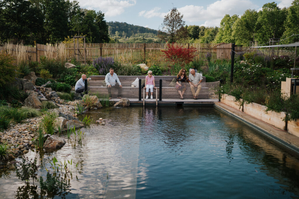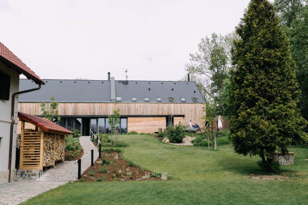 Sad a rybník působí jako místa, kde se svět na chvíli ztiší. Hosté i vy dva si sem můžete kdykoliv odskočit, na chvilku ticha, krátký rozhovor nebo moment, kdy si uvědomíte, jak krásný ten den vlastně je.